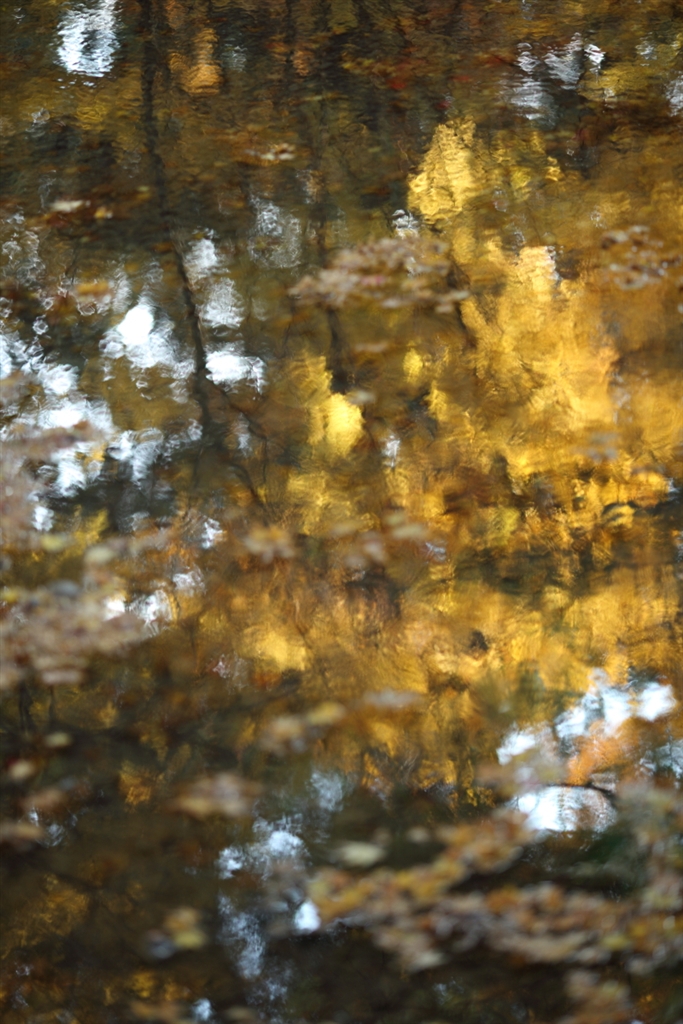 川の流れに映った紅葉