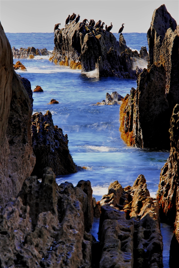 屏風岩に海鵜が並んでいました EF70-200F4LIS+ステテコ ISO100 F36 0.6S 1枚HDR