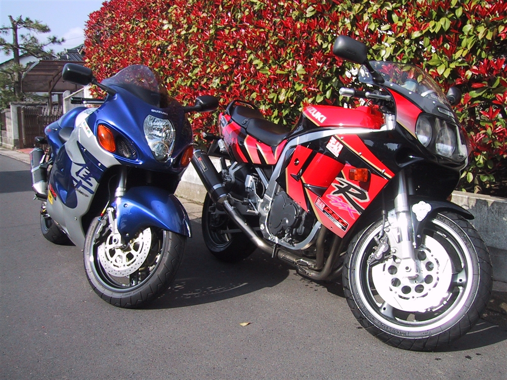 私の油冷GSX-Rと弟のハヤブサ