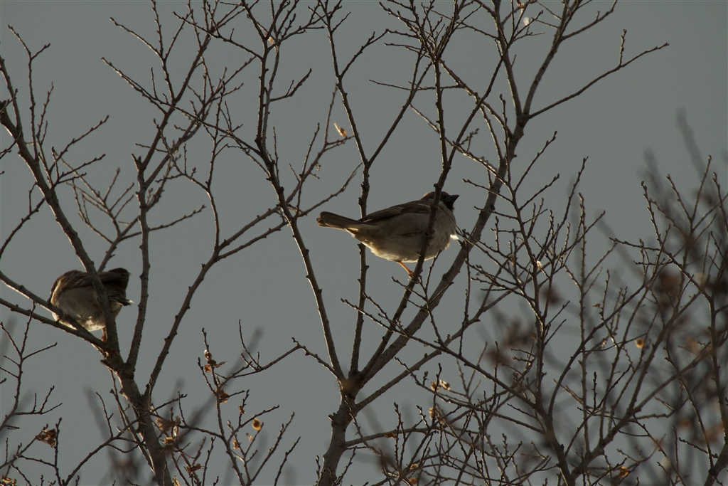 雀に西日ライティング
