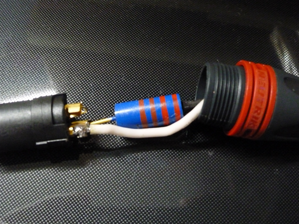 内部に抵抗を収めております 半田付けは汚いですが(汗