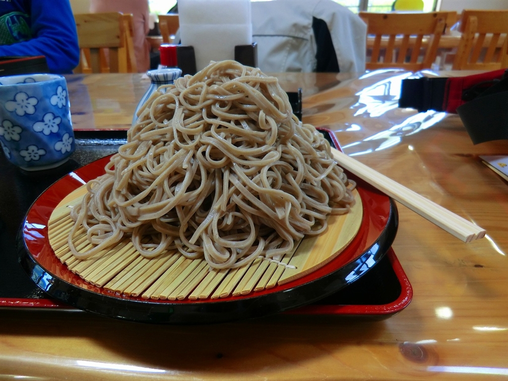 横から見ると大満足! (長野・上田、道の駅青木のそば大盛り)