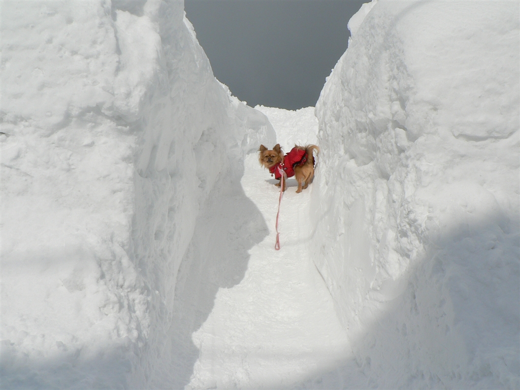 私の雪捨て場と愛犬です