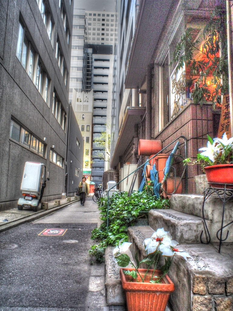 HDR ビルの谷間のささやかな華やぎ