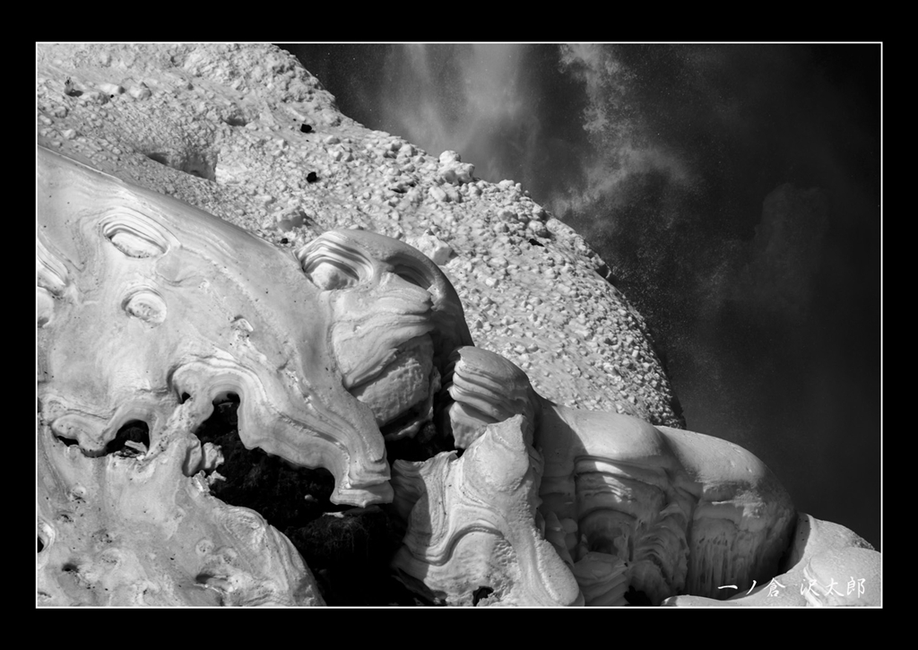 滝壺に憩う雪像