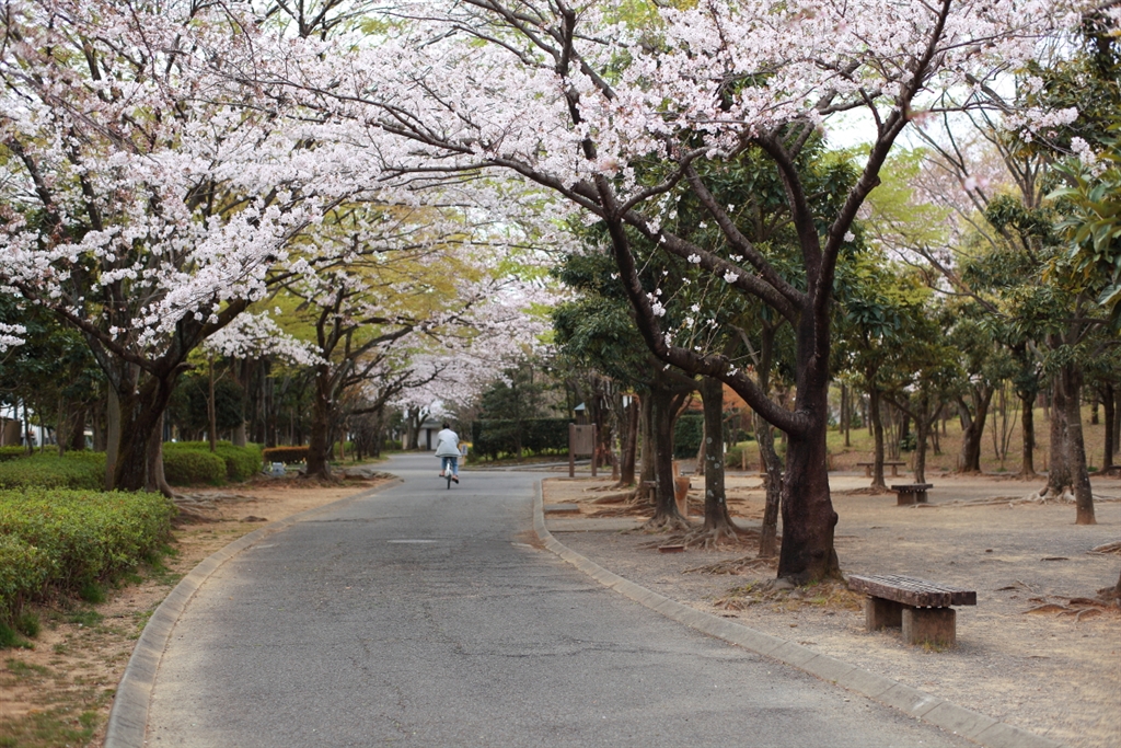 桜のトンネルをサイクリング