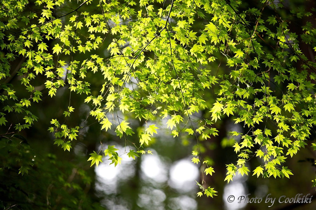 裏から光を受けての青モミジ