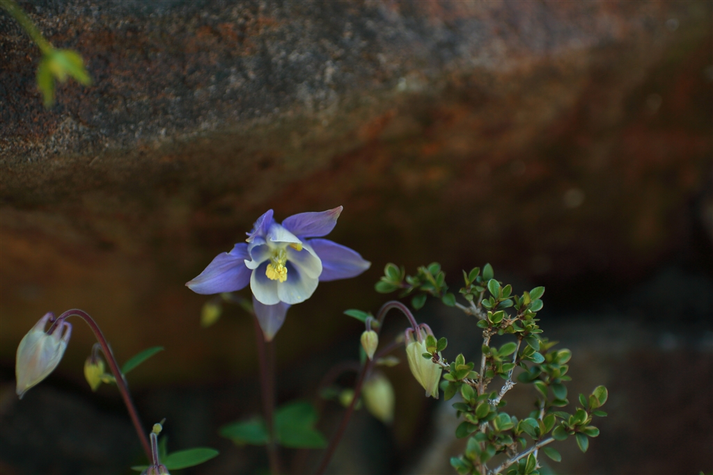 岩陰に咲くオダマキ