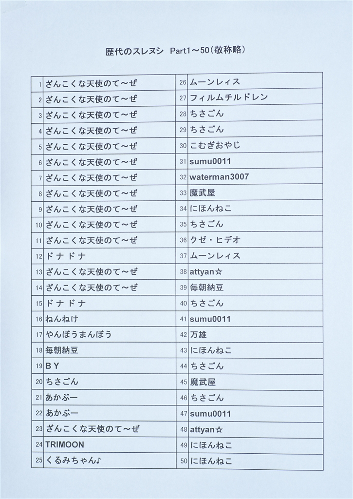 歴代のスレヌシ一覧