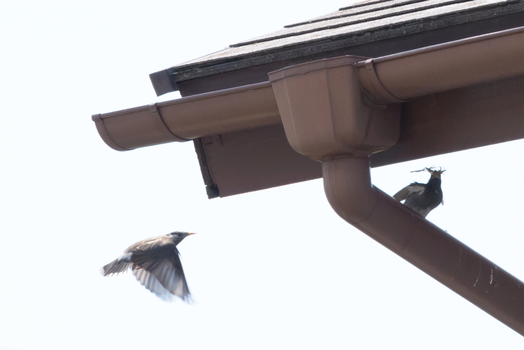 雨樋の後ろで巣作りをしているらしい…
