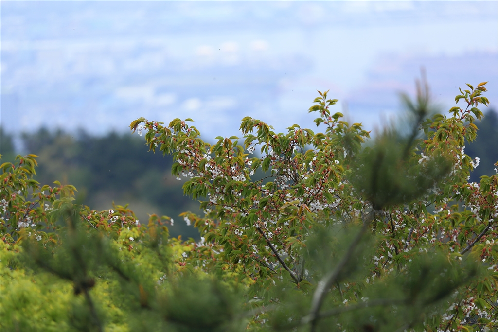 六甲山山頂には桜が残っていました。