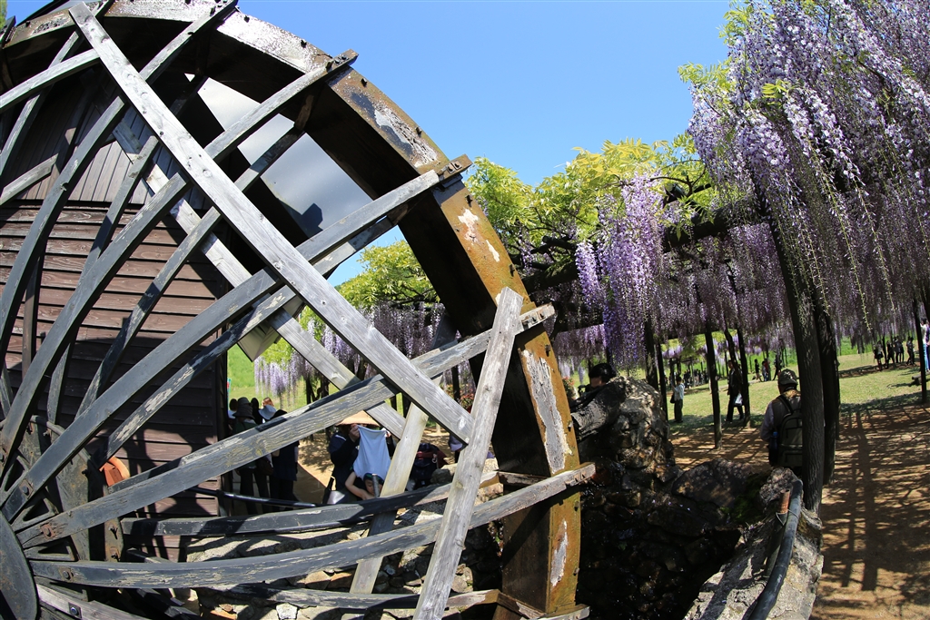 水車と藤(一点透視図法の構図)