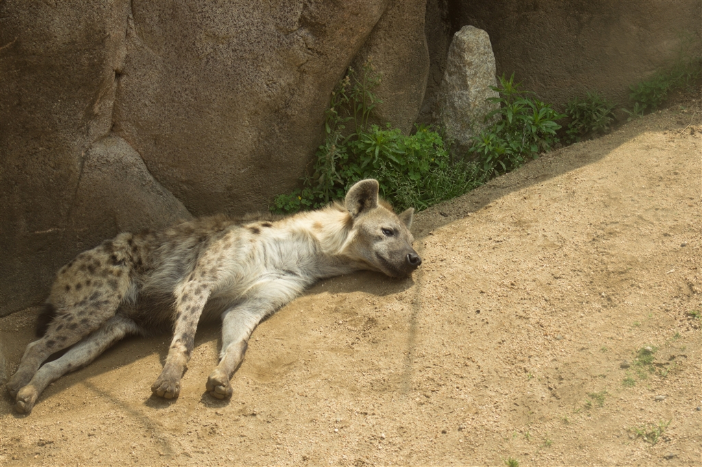 急に暑くなって動物園のハイエナもこのとおり。