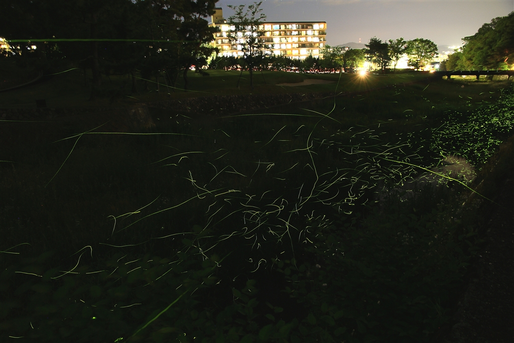 今晩のホタルです(晴れて気温もちょっと上がったからかも)《コンポジット》