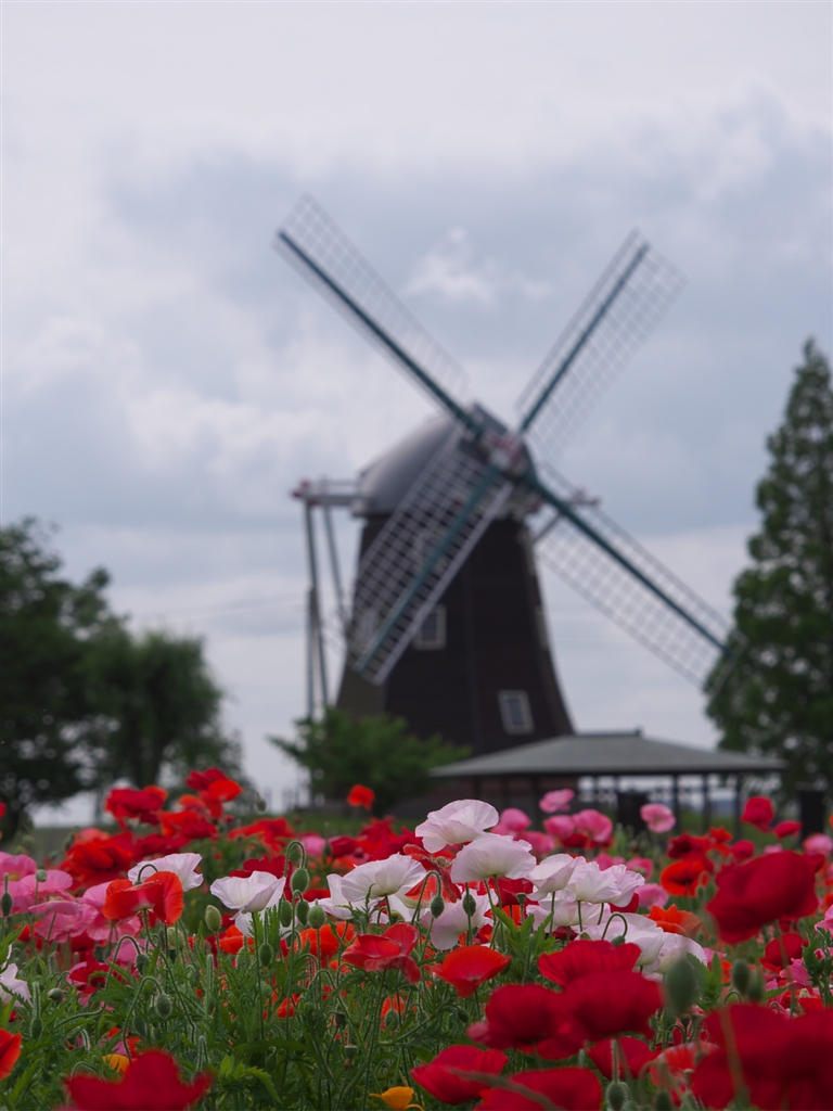 風車とポピー♪