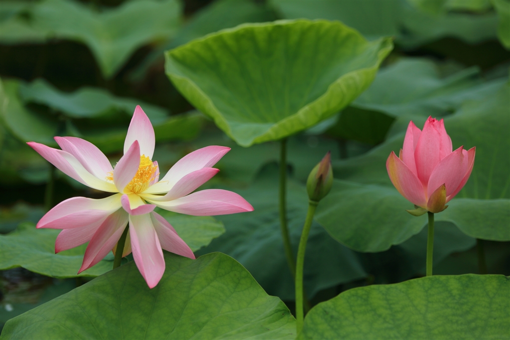 万博公園にて(葉・蕾・開きかけ・満開)
