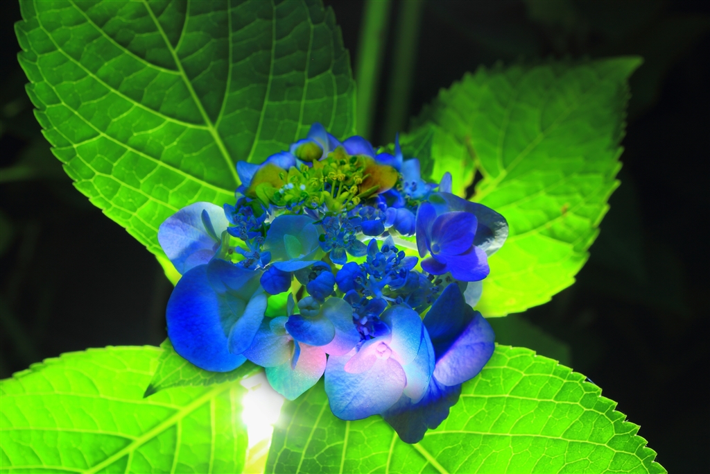 アジサイ(白色LEDバックライト、7色LEDの偏色照明、一部はソラリゼーション)
