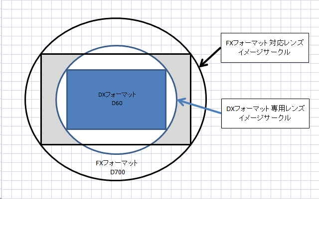 撮像素子の面積の違いと、イメージサークルの違い。