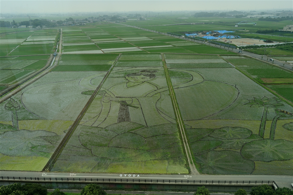 稲による絵です。稲の種類で濃淡をかえています。