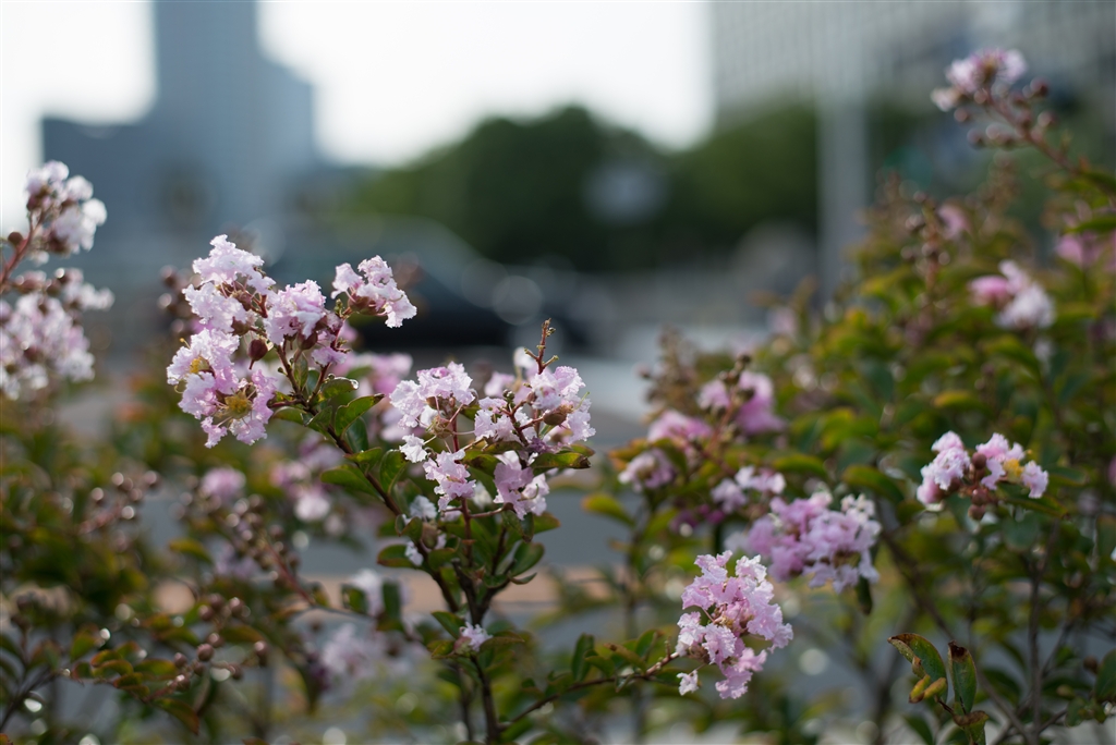 これは撮って出しの市役所前のサルスベリ。「サルスベリ 排気ガスにも 負けぬ花」