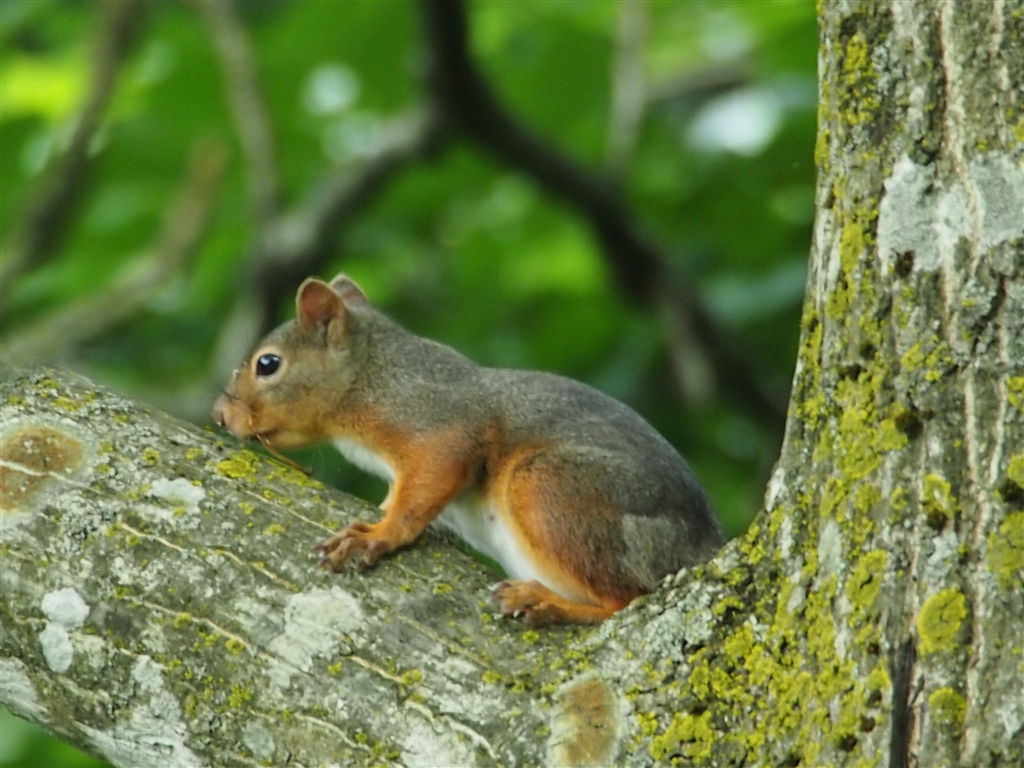 林の中で野生のリス発見