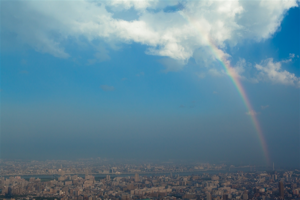 スカイツリーから見た虹(ポジ風現像)