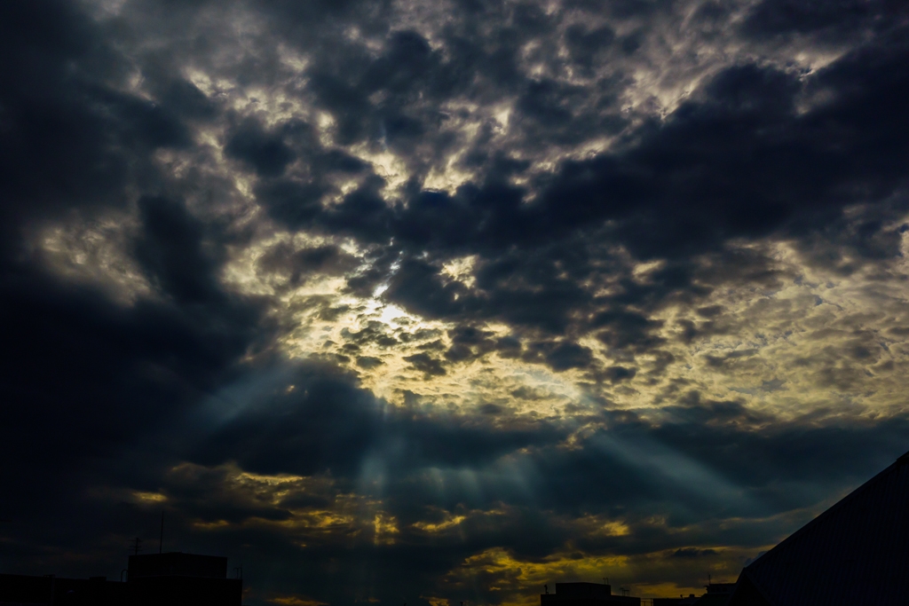 曇り空に穴が空いてはしごが降りてきました