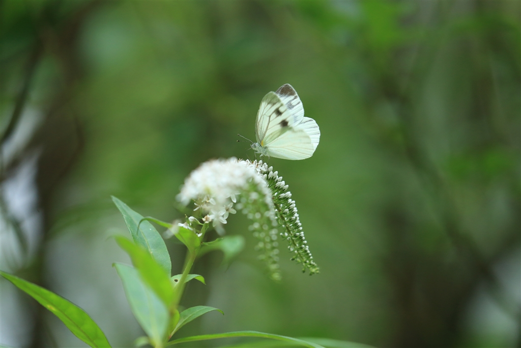 オカトラノオにとまるモンシロチョウ。