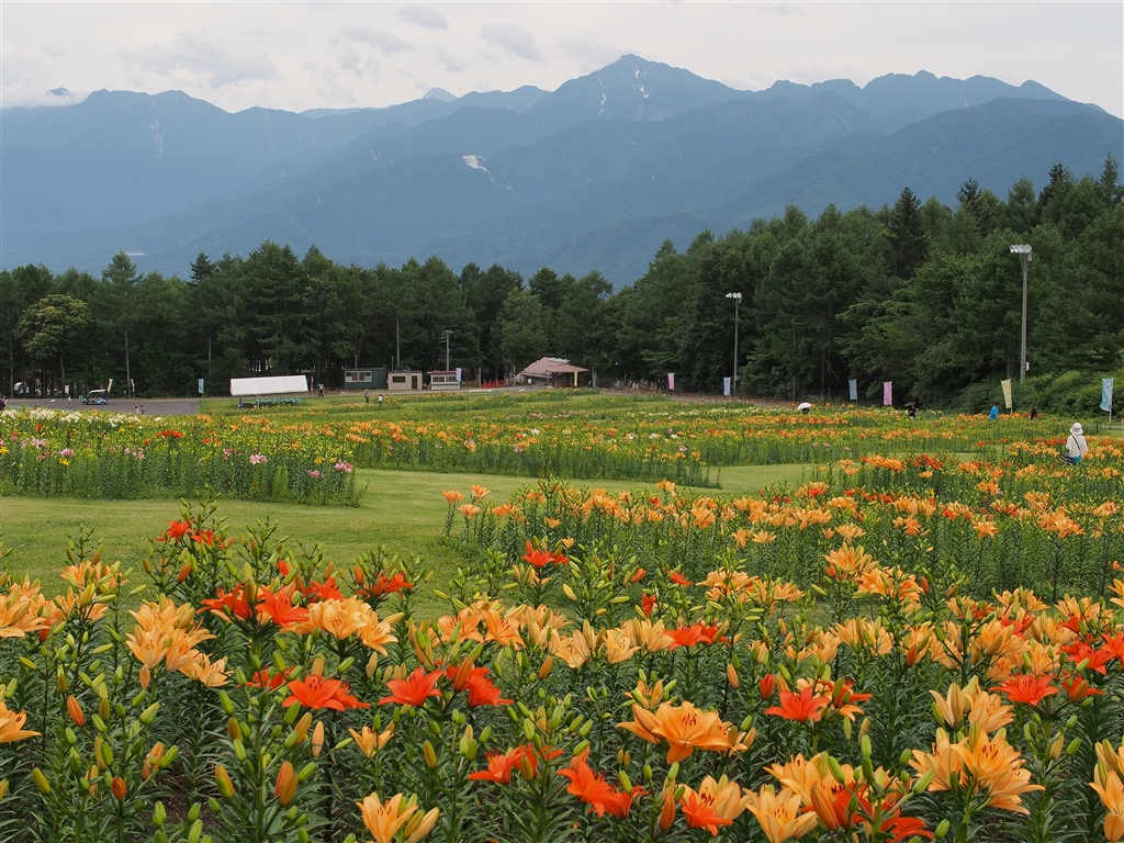 富士見高原です。甲斐駒、奥が北岳、左端が鳳凰三山です