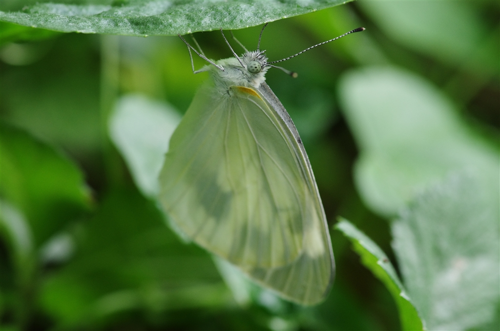 「くる禁」 緑に染まったモンシロチョウ