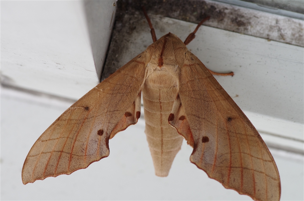 「くる禁」 蛾 クチバスズメ コンビニの窓際に居ました