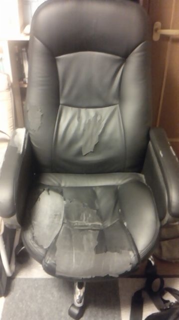 見るも無残なぼろぼろの人工皮革(汗)