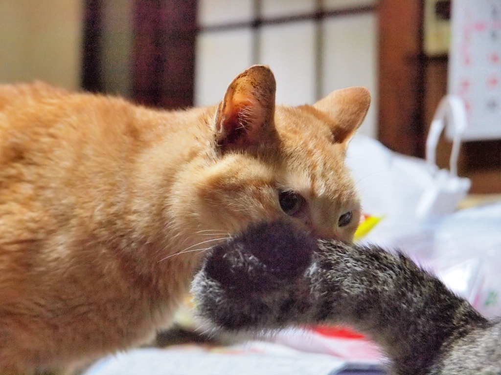 りかの尻尾ともも 匂いかいでます