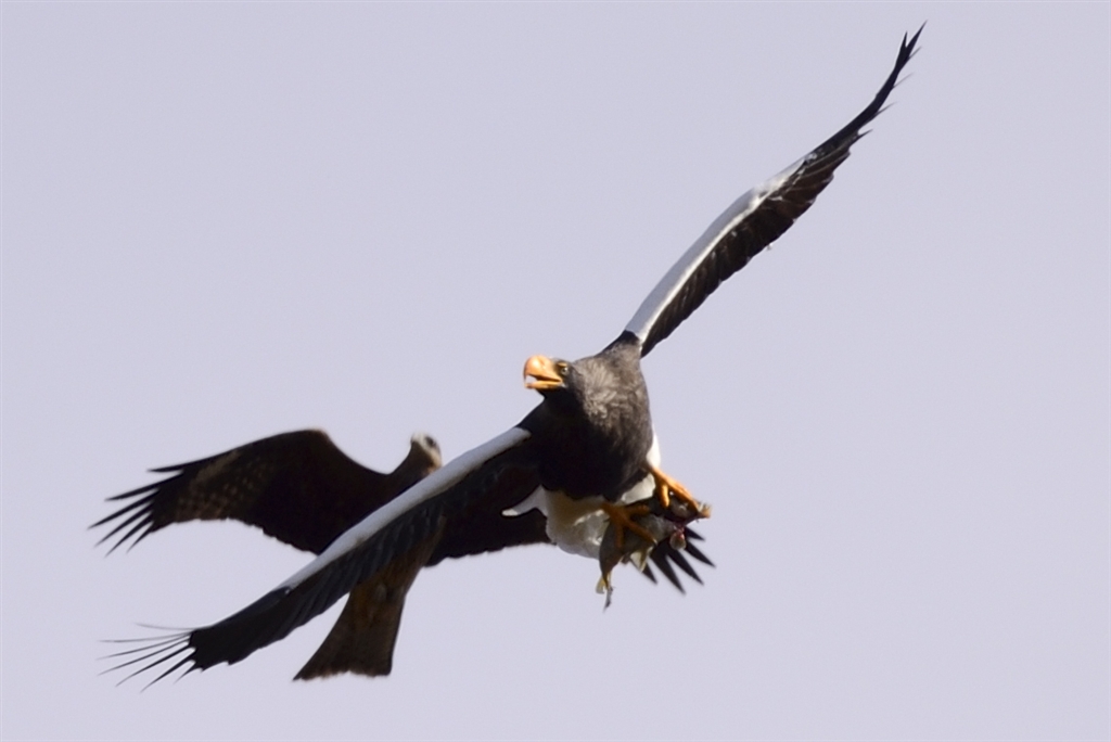 カラスを嫌がり飛び出すとトビが