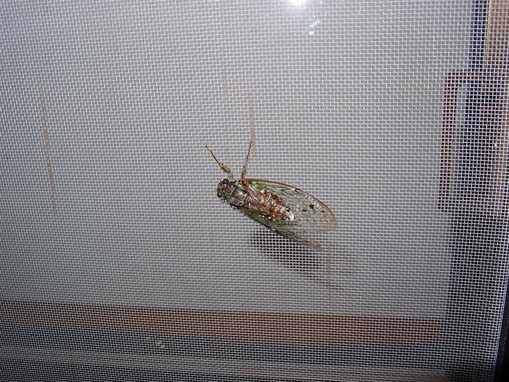 窓の蝉 (甲斐・白州、駒ヶ岳公園線近くの別荘地)