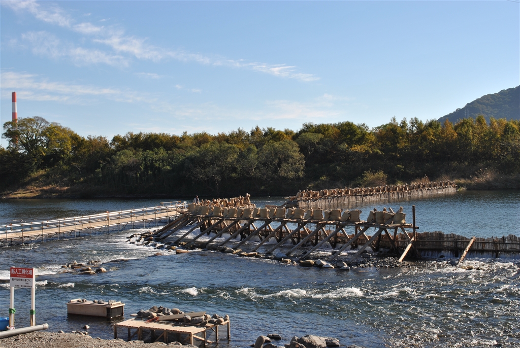 このように川を仕切るように架けます