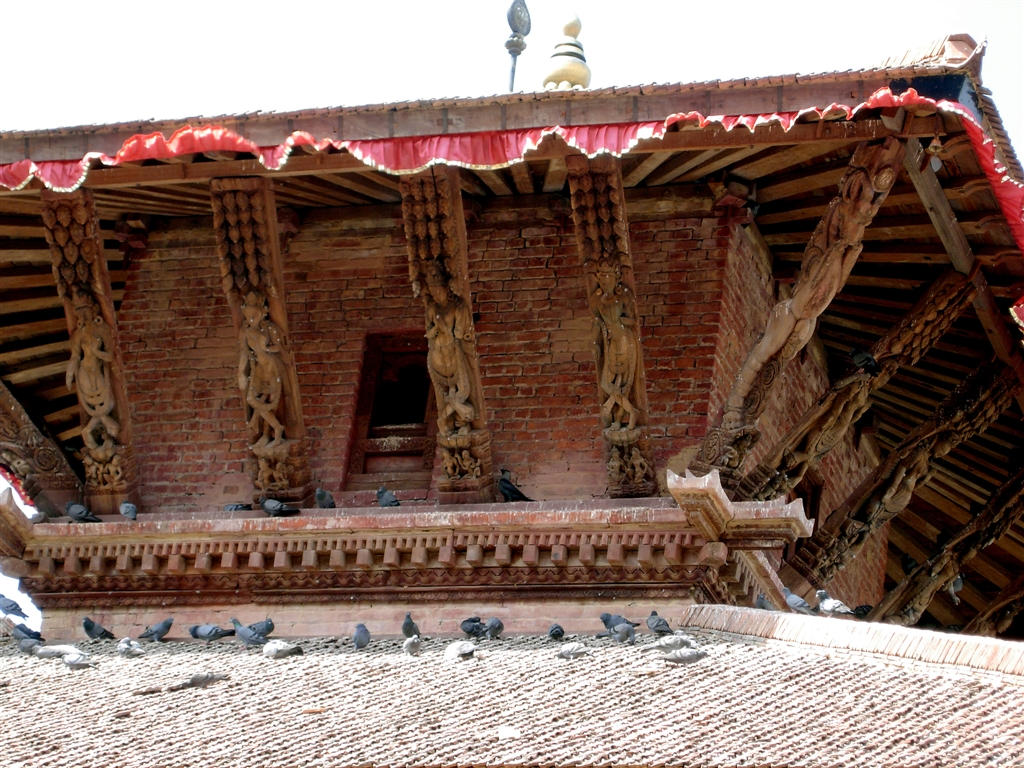 トゥンダール(屋根を斜めに支える柱)のネワール彫刻(アサン広場)