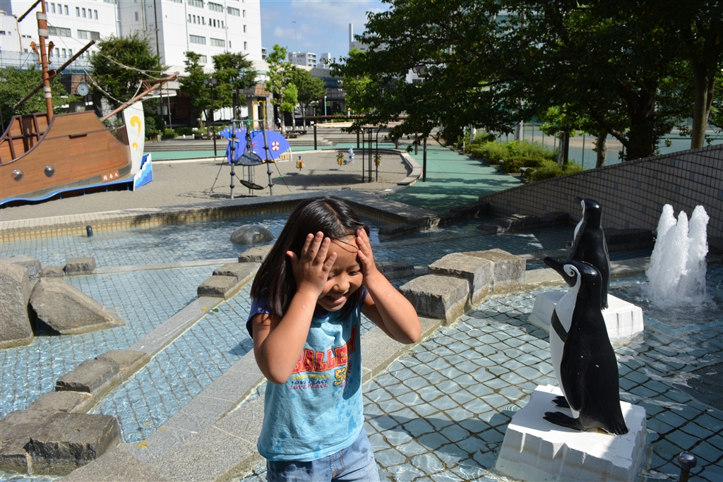 顔に水がかかり・・・