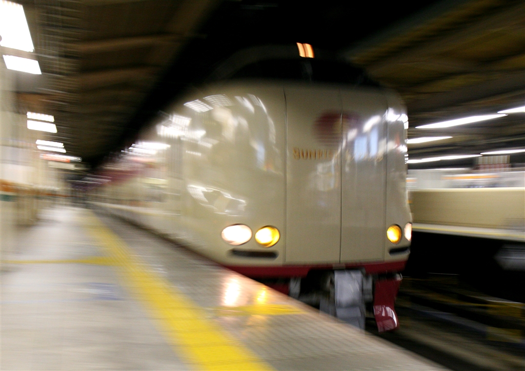 東京駅に滑り込む「サンライズ瀬戸・出雲」朝をイメージしたという配色が斬新
