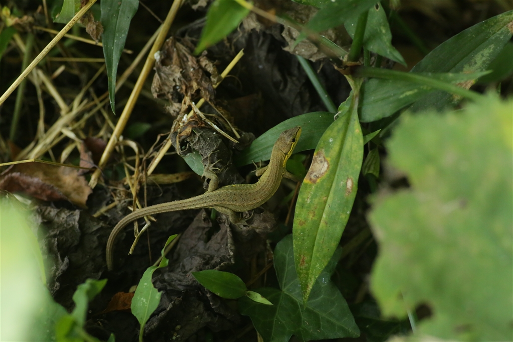 このカナヘビは、よく見るものより黄色が強かったです