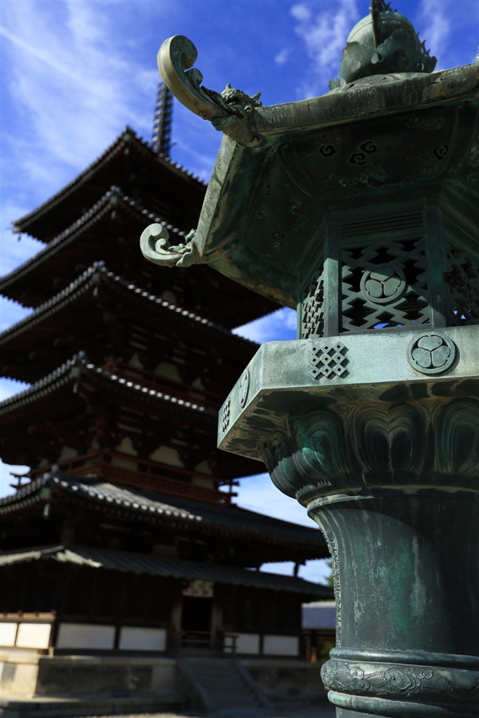 法隆寺にて(この紋所が目に・・・と五重塔に言ってます)