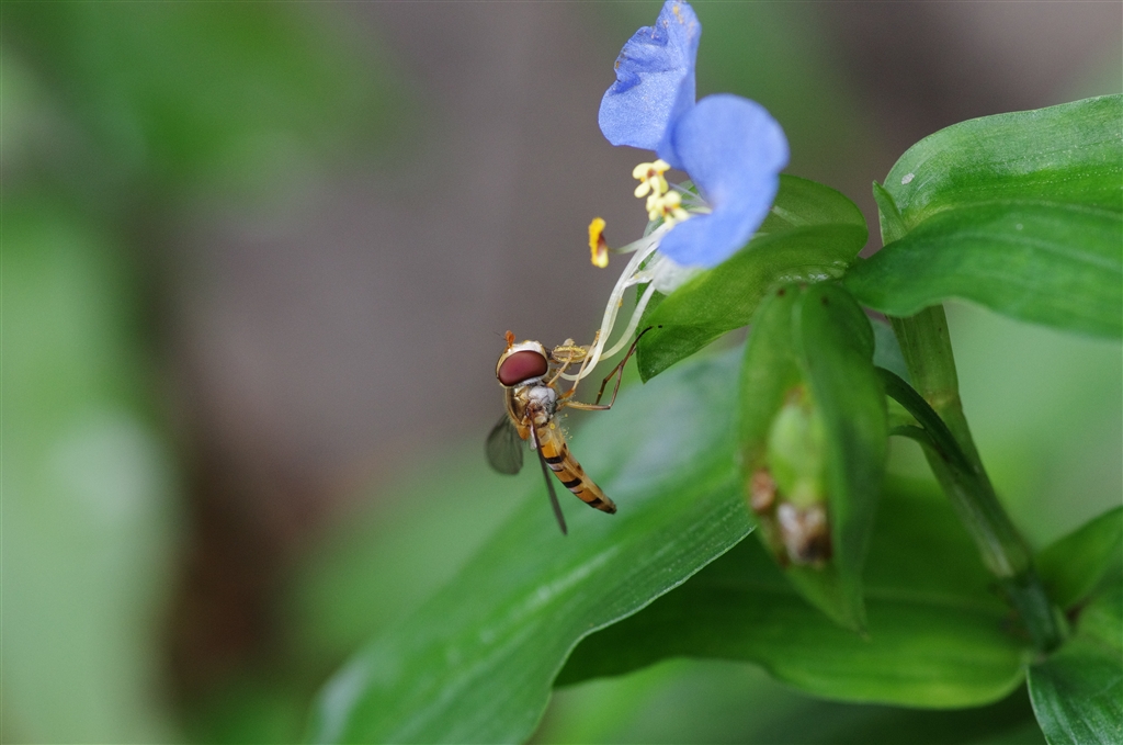 「くる禁」 ツユクサとホソヒラタアブ
