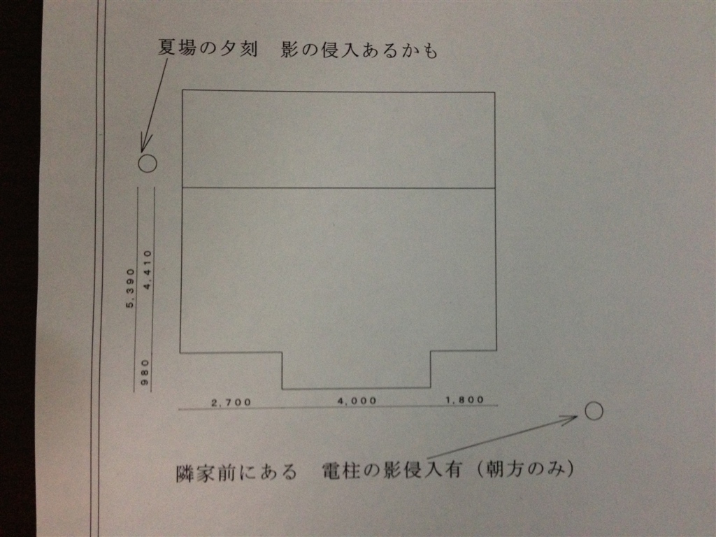 『上が北です。東側、隣と2軒隣の間に電柱。西側、北側の隣との間に電柱。』 太陽光発電 シャープすべて ram55さんのクチコミ掲示板画像1/1