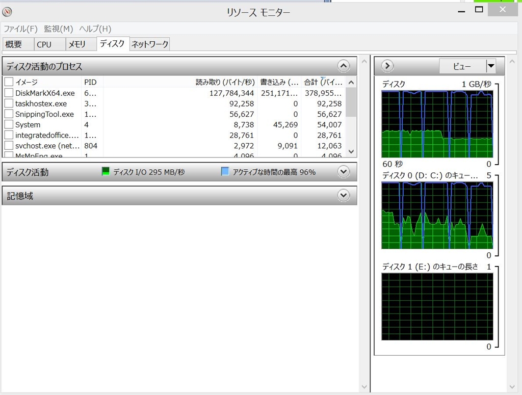 『リソースモニター』 ハードディスク・HDD(3.5インチ)すべて キハ65さんのクチコミ掲示板画像1/1