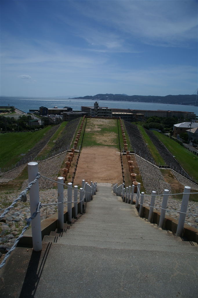 頂上から淡路島を望む。