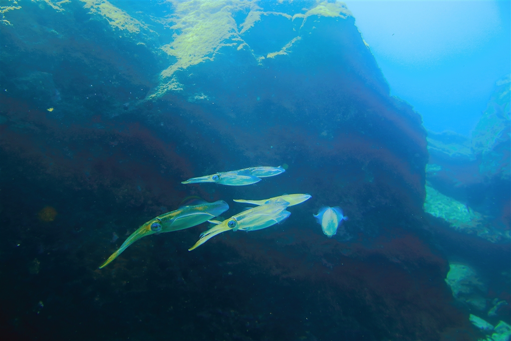 イカがこんなふうに泳ぐのは初めてみました(左のほうに進んでいます)
