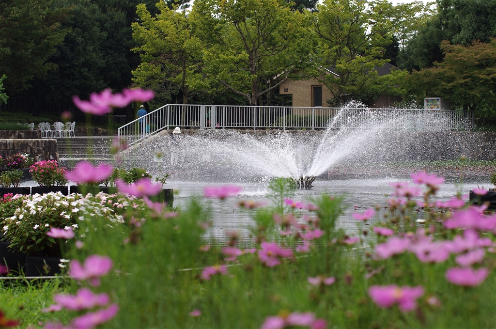 噴水にピント