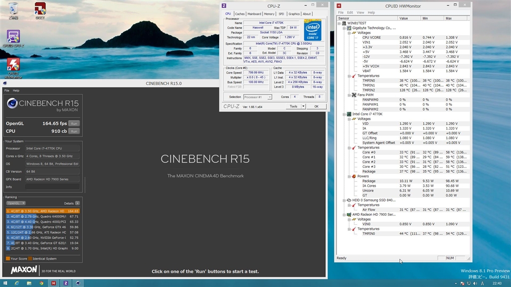 4770K@4.5GHz、Radeon HD7950@1000MHz