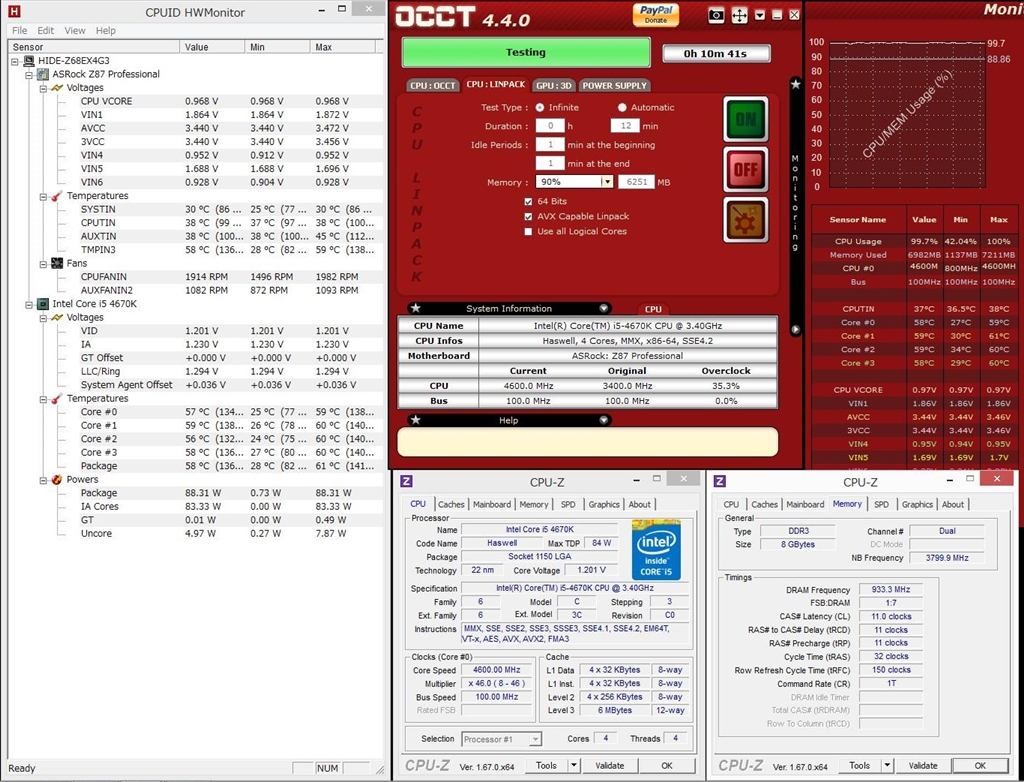 殻割後・46倍速・OCCT.LINPACK1.20v