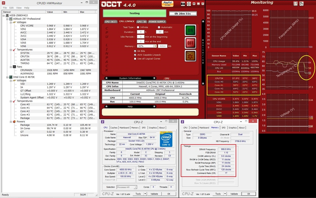 48倍速・OCCT.LINPACK1.267v.HWinfo不具合